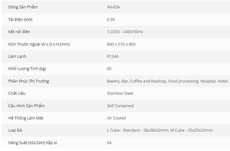 Máy làm đá này thuộc dòng máy làm đá vuông độc đáo; được thiết kế với đưa phương châm đưa an toàn vệ sinh làm điều tiên quyết. Mỗi chu kỳ băng đều được làm bằng nước sạch, đảm bảo chỉ có chất lượng cao nhất của nước đá được sản xuất. Các khối dễ dàng được nhận ra bởi hình dạng chính xác, rõ ràng và đặc biệt tan chậm. Điều này đặc biệt quan trọng đối với nước đá được sử dụng trong các loại đồ uống cao cấp như cocktail, vì nó bảo vệ sự toàn vẹn hương vị của thức uống. Máy làm đá này có thể kết hợp với các thùng lưu trữ riêng được sản xuất bởi Hoshizaki và có thể được xếp chồng lên nhau để nâng cao năng xuất sản xuất đá.